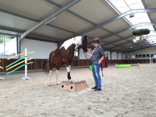 Ich gymnastiziere ihn sehr viel und wir machen viel Boden Arbeit. Spezifisch auf eine Reitweise bin ich bisher nicht eingegangen. Er ist also absolut offen für Dressur, Springen oder auch Western. Wobei ich ihn in Richtung Western weiter arbeiten und ausbilden würde.