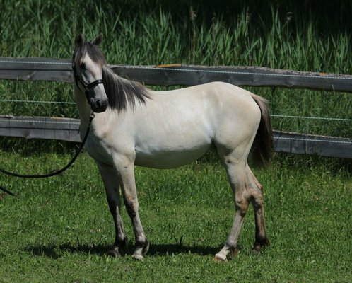 Atacama ist im Moment noch Falbe, sie wird aber in Zukunft ausschimmeln. Sie steht derzeit im Offenstall und kann jederzeit besichtigt werden.