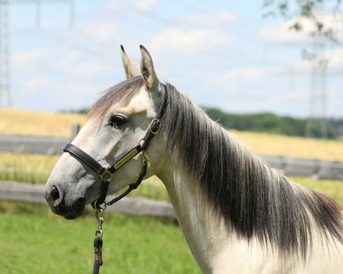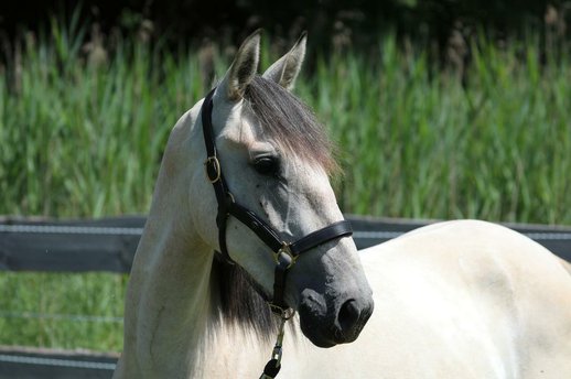 ...ist unsere ausdrucksstarke Jungstute mit rassetypischem Lusitano-Kopf.