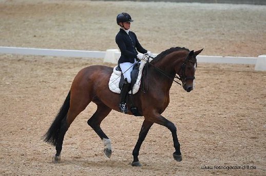 Stute hat 4 jährig sehr gute SLP mit St-Pr. A abgelegt und war 5 jährig zum Bundeschampionat qualifiziert. Dann mehrfach M Dressur platziert und siegreich und Jungpferde S platziert.