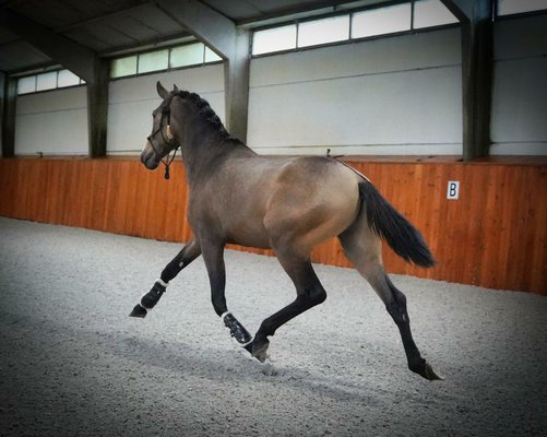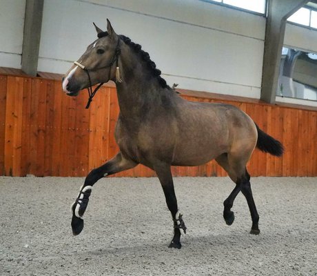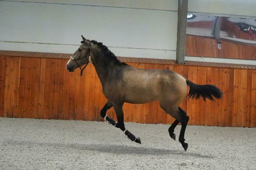 Sportlich, modern und elegant ist dieser junge Hengst eine wirklich attraktive Perspektive! Seien Sie sich bewusst - es ist nicht alltäglich, dass wir Ihnen ein solches Pferd vorstellen, das zufällig pirofrei ist! Seine Bewegungen sind elastisch, ausdrucksstark und bodenbedeckend mit einem hervorragenden Hinterbein und einer langen Schrittlänge. Er wurde gerade in das Training unter dem Sattel eingeführt und erweist sich als süßes und leichtes Pferd, kooperativ und mit ausgezeichnetem Verstand. Er nimmt alle neuen Herausforderungen an wie ein wahrer Gentleman, der mit nichts angespannt oder gestresst wird - ein A + -Schüler, der definitiv ein vertrauenswürdiges Pferd und ein williger Partner wird, der immer bereit ist, nichts anderes als sein absolutes Bestes zu tun! Dies ist seine allgemeine Einstellung in jeder der Handhabungsaktivitäten. Er ist ein kluger und neugieriger Junge, immer auf der Suche nach etwas Neuem, das er lernen kann. Wir wiederholen: Es ist nicht jeden Tag, dass wir auf diesen herausragenden Charakter und dieses makellose Verhalten gestoßen sind - das sind definitiv einige seiner größten Vorzüge. Als so ehrliches und echtes Pferd ist er ein geeigneter Kandidat nicht nur für einen Reiter mit Wettkampfambitionen, sondern auch für einen Amateur, der nach dem Besonderen sucht, mit dem er das Niveau erklimmen kann. Getreu dem Lusitano-Typ ist er einfach wunderschön in seinem Aussehen - wir sind sicher, dass er bald bildschön unter dem Sattel sein wird. Alles in allem, wenn Sie auf der Suche nach einem jungen, ehrgeizigen Pferd mit der richtigen Einstellung sind, mit der Sie bei Null anfangen können, könnte dies genau das Richtige sein. Verpassen Sie nicht die Chance, ihn besser kennenzulernen, er wird nicht lange in der Nähe bleiben: