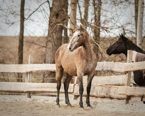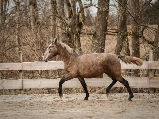 Sie ist eine Stute die für ANCCE Zuchtschauen und die spätere Zucht perfekt geeignet wäre - aufgrund ihres Fundaments, des harmonischen Exterieurs, ihrer ausgeprägten Kopfform und ihres gewaltigen Gangbildes und nicht zuletzt ihres Charakters. Das Zuchtziel wurde hier definitiv mehr als erfüllt. Mit ihren knapp 2 Jahren ist sie überdurchschnittlich gut entwickelt und misst bereits 1.66m, ein stattliches Endmaß ist ihr somit sicher.