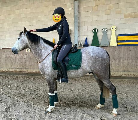 Dieser hübsche Schimmel ist ein super freundliches Pferd und absolut problemlos im Umgang und beim Reiten. Agus arbeitet jeden Tag aufmerksam und fleißig mit. Er befindet sich aktuell im Beritt und Ausbildung. Er ist kein Steiger, Buckler und auch im Gelände schreckfest.