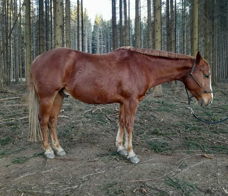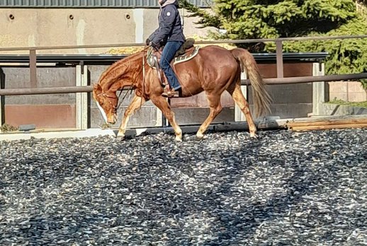 Wegen Rückzug aus dem Reitsport sucht dieser bildhübsche QH Wallach ein neues Zuhause. Willy ist 2013 geboren und besitzt ein Stockmaß von 153 cm. Er hat einen lieben, sensiblen Charakter, ist gut erzogen, umgänglich und zeigt viel 'will to please'. Vom Temperament her ist er eher fleißig aber immer gut regulierbar. Der Wallach wurde selbst schonend 4-jährig angeritten und vielseitig im ambitionierten Freizeitbereich gearbeitet. Hat aber auch Potenzial für kleinere Turniere. Besitzt eine solide Grundausbildung. Kennt Bodenarbeit, Longe und Agility. Er geht zu zweit ins Gelände, braucht dort aber einen erfahrenen Reiter. Auch Kurse auf fremden Höfen und Extreme Trail sind für ihn kein Problem. Bei der Arbeit auf dem Platzt ist er brav und bringt viel Spaß. Der Wallach war nie ernsthaft krank. Steht zur Zeit in Offenstallhaltung in familiärer Umgebung. Besitzt eine gute Reiningabstammung (Gallo Del Cielo/Great Red Pine/ Mc Jacflash). Willy ist ein toller Freizeitbegleiter für ambitionierte Reiter.