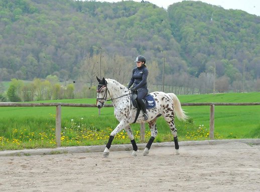Bezaubernder Tigerscheck-Wallach mit bester Rittigkeit, drei guten GGA und ausgezeichnetem Schritt, dabei immer am Zügel und sehr sitzbequem, bietet sich Carbon sehr gut an. Ein Wallach für den vielseitigen Einsatz, Dressur, Springen, Freizeit, Gelände und auch für Jagd geeignet aufgrund seines tollen Charakters.