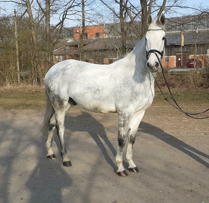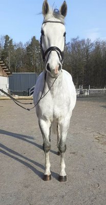 Zum Verkauf steht mein 11- jähriger Schimmelwallach von Silverstone ( Champion du Lys ) x Lux. Schweren Herzens muss ich mich von meinem Pferd trennen, da ich erkrankt bin. Er ist ein lieber Kerl, superbrav im Umgang am Boden.Beim Springen ist er unkompliziert, hilft seinem Reiter und verzeiht einem auch eine falsche Distanz. Keine Unarten wie Bocken oder Steigen. Kennt Bodenarbeit und ist unerschrocken beim Gelassenheitstraining. Weidegang mit anderen Pferden ist kein Problem. Natürlich schmiede- und verladefromm. Für ihn wäre eine Offenstallhaltung, bzw. ganztägiger Weidegang ideal. Aktuelle Röntgenbilder liegen vor.