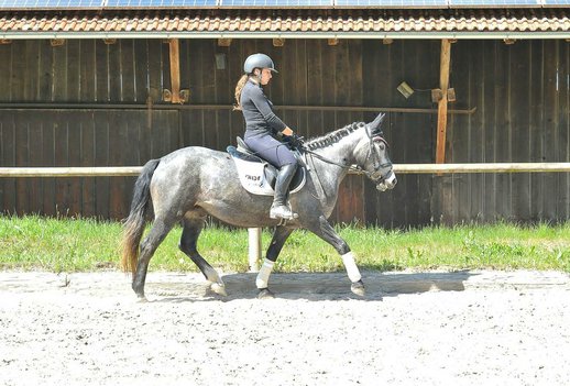 Rosi ist eine nette, ansprechende Schimmelstute die mit Talent für Dressur, Springen, und Freizeit überzeugt. Auch für Geländeausritte , sie ist bereits gut geritten in allen 3 GGA. Kennt auch Halle und Platz. Tolles Ausbildungspony für Damen und Junioren.