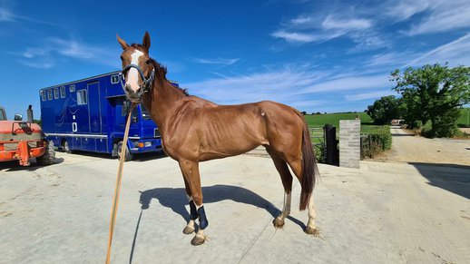 5 Jahre alter TB Kastanienwallach, 17hh von Leading Light aus dem Training nur wenige Wochen und ist nun bereit, in eine neue Karriere eingeführt zu werden.