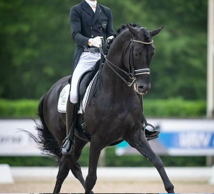 Er ist unkompliziert, ohne Hengstmanieren, wunderschöner Typ, super Reiteigenschaften, vorsichtig mit viel Übersicht und Gleichmaß.