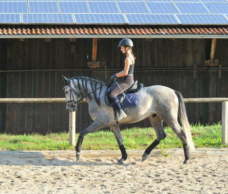 Hübscher PRE-Wallach mit 3 sehr guten GGA und gutem Charakter. Einfach im Händling, mit top Einstellung, leicht am Zügel und gut zu sitzen. Ruhig beim Reiten sowie im Umgang. Kennt Geländeausritte sowie Platz und Halle. Aufgrund seines Charakters auch für schwächere Reiter geeignet. Sehr hübscher Spanier für den vielseitigen Einsatz.