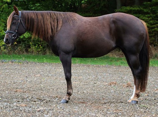 Diese bezaubernde Maus ist eine 13 Jährige Quarter x Welsh Cob Mix Stute ca. 1,57 cm