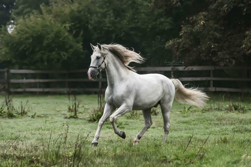 Vinnie ist beachtliche 1,70 groß und dabei so sanft und so lieb, dass ein Kind mit ihm umgehen könnte. Dieser tolle Schimmel kann als perfektes Freizeitpferd empfohlen werden. Er hat einen ausgeglichenen Charakter, geht alleine ins Gelände, verzeiht auch Reiterfehler und eignet sich auch für schwächere Reiter, für ältere Reiter, Wiedereinsteiger oder sogar als Familienpferd. Bisher wurde Vinnie überwiegend im Gelände geritten. Insofern ist er noch unverbraucht, bringt aber auch alles mit, mehr in Richtung Dressur geritten und noch weiter ausgebildet zu werden.