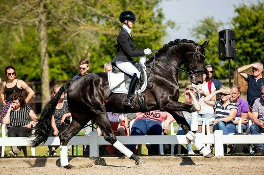 Ein Pferd für Amateur mit Trainer, ehrgeiziger Reiter, erfahrener Reiter, Profi. Zeigt im Training bereits gute Piaffe-Passage-Ansätze.