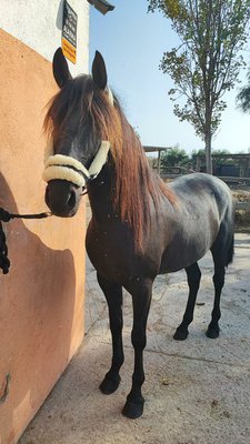 Einzigartiger lackschwarzer PRE Andalusier Wallach, groß und barock. Mit 5 Jahren schon 165 cm groß. Raumgreifende ausbalancierte Gänge mit einer schönen Bergaufgallopade machen Ihn zu einem Reitgenuss. Er ist ein sehr nobles, kräftiges und kompaktes Pferd. Super braver und umgänglicher Charakter, absolut Klar im Kopf. Videos und weitere Informationen Whatsapp gerne jederzeit auf Anfrage. +34 674 95 69 36 MLG aus Spanien.