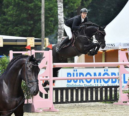Sehr solide Grundausbildung, ausbalanciert, gute fliegende Wechsel, vermögend, einsatzbereit für 1,30 m. Aber er ist ein bestätigtes S-Dressurpferd der Klasse M-Dressur!