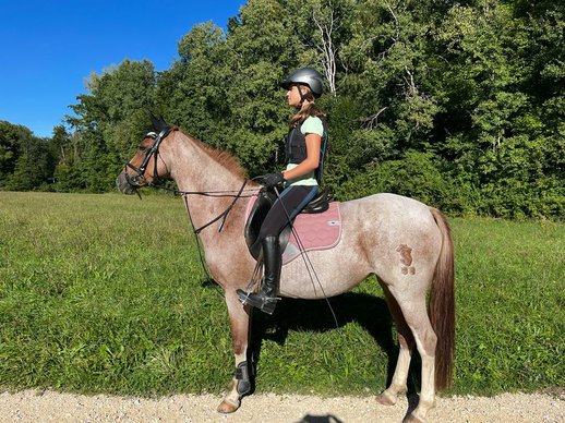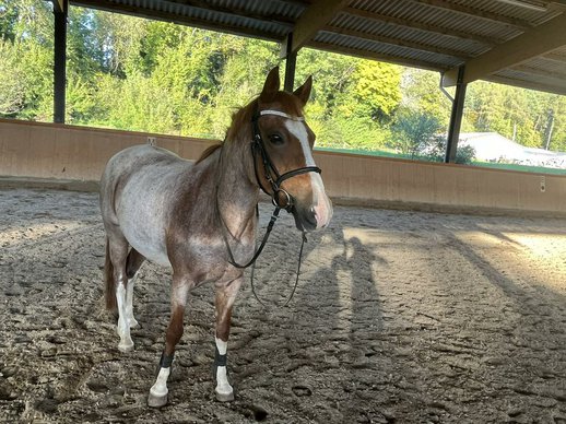 Wir verkaufen unsere 12 jährige Reitponystute Funny. Sie ist ca. 1,48m gross und hat die tolle Sonderfarbe Red Roan.