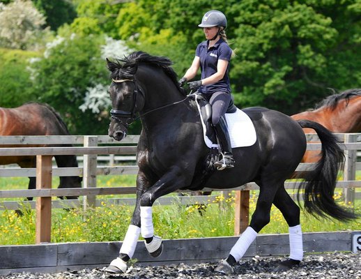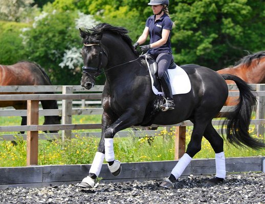 Außergewöhnlicher schwarzer Dressurwallach.
