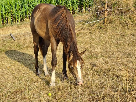 Für diesen tollen Kerl wird ein förderndes Zuhause gesucht. Der Quarter Horse Hengst überzeugt nicht nur durch seine wundervolle Farbe (dark buckskin) sondern auch durch seinen umwerfenden Charakter, sein Will to Please, sein Gebäude, seine tollen Bewegungen und seine gute Reining Abstammung. Er ist 5.21 geboren und wird ein geschätztes Endmaß von 152 -155 cm bekommen. Ausgestattet mit guten Grundgangarten und einem korrekten Gebäude. Wächst im Herdenverband auf. Ist gesund und 5- Panel n/n. Kennt das Fohlen ABC. Lewis ist unheimlich gelassen und aufmerksam. Der Kleine ist sehr dem Menschen zugewandt und stets bemüht alles richtig zu machen. Sein Vater ist der erfolgreich geshowte QH Hengst Hollys Electricspark (LTE: 77000 $), ein Jacs Electric Spark Sohn aus einer Hollywood Dun It Tochter. Die Mutter von Lewis ist eine Fourteen Karat Jac Tochter. NRHA einbezahlt. Tolles Nachwuchspferd für die Show oder zur Zucht. Kann gerne zur Aufzucht bleiben.