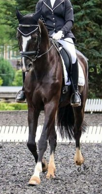 Direkt vom Züchter und in fördernde Hände wird dieser bildhübsche Mecklenburger Wallach verkauft. Sundevil ist 2013 geboren und besitzt ein geschätztes Stockmaß von 177 cm. Der Wallach besitzt einen sensiblen, lieben Charakter, ein korrektes Gebäude und 3 sehr gute Grundgangarten. Er wurde schonend ausgebildet. Sein derzeitiger Ausbildungsstand ist Klasse L. Befindet sich zur Zeit im Beritt beim Profi. Sundevil hat Siege und Platzierungen von Reitpferdeprüfungen bis Dressur Klasse L vorzuweisen. Bei weitergehendem Training bringt er Potenzial für M und S mit. Er ist ein tolles Pferd für den Sportreiter, möchte gefallen, ist sehr leistungswillig und braucht aber auch regelmäßige Arbeit. Er wurde von einer jugendlichen Reiterin auf Turnieren vorgestellt. Seine kleine Schwäche ist das Koppen (er benötigt nur in der Box einen Koppriemen) und hatte keinerlei gesundheitliche Probleme dadurch. Gesund. Aktuelle AKU ohne Befund liegt vor. Schmiede- und verladefromm. Wer ein sehr gutes Dressurpferd für den Sport oder aber ein gut gerittenen Freizeitbegleiter sucht, sollte sich ihn mal anschauen.