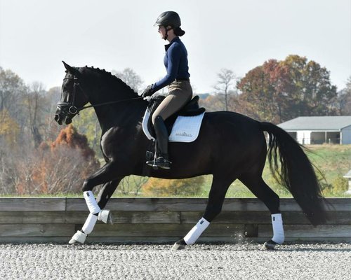 Er ist sehr exzellent im Galoppschritt, fließenden Übergängen, Trab und Piaf mit Trainer sein idealer Reiter. Als ich diesen jungen wallach das erste Mal gesehen habe, habe ich direkt sein Potential und sein Talent entdeckt. Er steht noch sehr in der Entwicklung, aber ich bin überzeugt, dass er zu einem überragenden Sportler heranwächst. Er ist vollkommen gesund und Röntgenbilder, Bilder und Videos stehen Interessierten zur Verfügung.