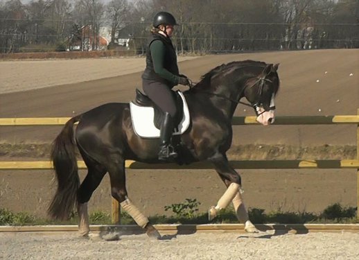 Er ist ein junger, schicker, moderner Wallach mit drei sehr guten Grundgangarten und einem starken Bewegungsablauf. Hervorzuheben ist leistungsbereit und zielstrebig, mit dem Galopp und aktiver Hinterhand. Er ist sehr angenehm zu reiten und motiviert jeden Tag Neues zu lernen.