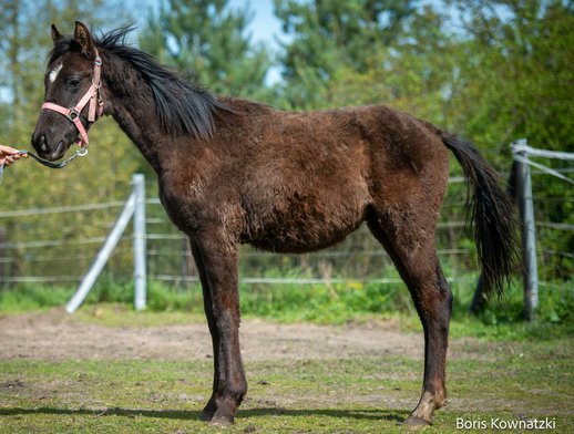 Wegen Bestandsreduzierung sucht dieser bildhübsche, schwarze Jährling ein neues Zuhause. Er ist 2022 geboren und wird ca. 163 cm groß werden. Kastor wächst mit anderen Hengsten unterschiedlichen Alters im Herdenverband auf. Er ist halfterführig, brav beim Schmied und ganz lieb im Umgang. Ein menschenbezogener, aufgeschlossener Jährling, der eher ein Spätentwickler ist. Kastor ist russisch gezogen. Sein Vater ist Hitmos und seine Mutter heißt Klärchens Bluebell von Bellheim (in Deutschland ein seltener Stutenstamm). Er besitzt deutsche Papiere. Später sicherlich vielseitig einsetzbar.