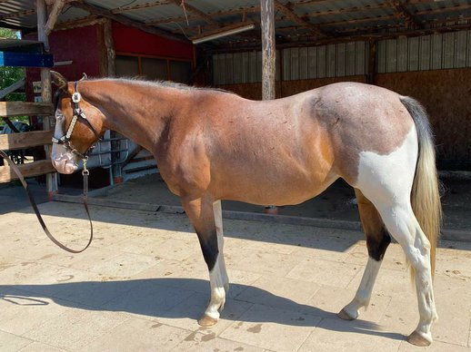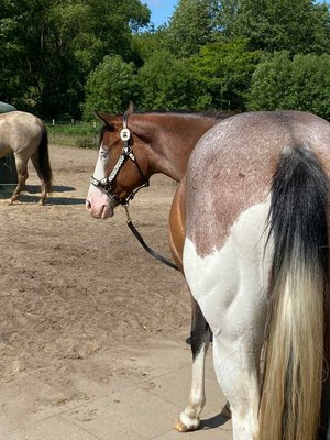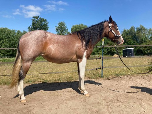 Schweren Herzens wegen absolutem Zeitmangel sucht diese traumhafte, doppeltregistrierte Stute ein neues 5 Sterne Zuhause. Angel wird mit vollen Papieren der AQHA und APHA abgegeben. Sie ist 2021 geboren und hat zur Zeit ein Stockmaß von 148 cm. Die Stute besitzt einen traumhaften Charakter, immer lieb, sehr brav im Umgang, willig neues zu lernen und super menschenbezogen. Angel bezaubert nicht nur durch ihren Charakter, auch ihr Erscheinungsbild ist der Hammer. Ein Bay Roan mit 2 blauen Augen und einem sehr korrekten, kräftigem Gebäude. Sie ist für ihr Alter schon sehr gut entwickelt. Die Stute kennt ein wenig Bodenarbeit, ist halfterführig und kennt alles was man als 2-Jährige kennen und können sollte. Aufgrund ihrer Abstammung wird ihr Einsatzgebiet später sicherlich im Reining / Allroundbereich liegen oder als absolut cooler Freizeitbegleiter. Ihr Vater ist Colonels Smoking Gun gezogen und mütterlicherseits ist Angel Hancock gezogen. Dieses Sahnestückchen sollte man sich live anschauen und sich verzaubern lassen.