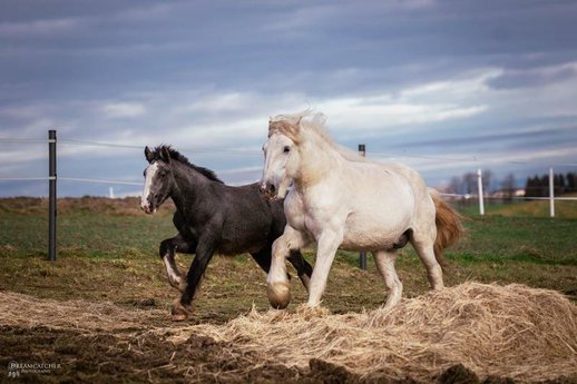Esmeralda ist meistens brav beim Hufschmied (hier hat sie mal mehr, mehr weniger Lust) und Tierarzt (immer problemlos), lässt sich brav führen und beherrscht das Fohlen-ABC.