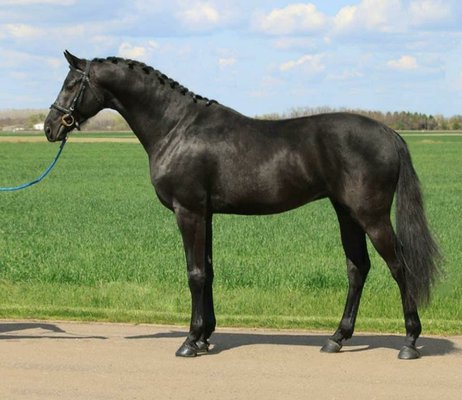 Er hat solide Grundausbildung, ausbalanciert, vermögend, einsatzbereit für S** im Dressurreiten. Er ist 172 m groß.