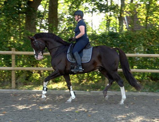 Er hat tolle Bewegungen und ist sehr gut ausgebildet; Guter Schritt, guter Trab und guter Galopp. Alle Seitengänge, fliegende Wechsel, Pioretten und Passage, Piaffe sind einfach mit ihm zu erarbeiten. Für einen feinen Reiter ist es ein Pferd mit viel Potential.