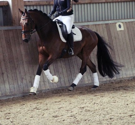 Er bringt nicht nur viel Bewegungsqualität mit, sondern auch einen absolut ehrlichen und liebevollen Charakter. Direkt am ersten Tag hier, überzeugt er schon mit seiner unglaublich tollen Arbeitseinstellung und seiner liebevollen, aufmerksamen Art. Ein Dressurpferd mit hervorragender Perspektive. Er ist leicht in der Anlehnung zu reiten, immer arbeitswillig, lernwillig und will einfach gefallen. Egal ob im Gelände, in der Bahn, wie auch beim Gelassenheitstraining, er ist einfach cool. Er zaubert jedem ein Lächeln ins Gesicht. Total verschmust, menschenbezogen, ausgeglichen, nervenstark und von der Umwelt unbeeindruckt. !!!SCHAUEN SIE SICH UNBEDINGT DAS VIDEO AN!!! Er ist für jeden Spaß zu haben. In ihn muss man sich einfach verlieben. Wir können ihn uns auch gut für jüngere Reiter mit höheren Zielen vorstellen. Warten Sie nicht zu lange, auf so eine tolle Chance.
