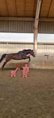 Aktuell ist sie Springen und Dressur auf solidem A-Niveau, kommt aber vor allem im Springen bestimmt noch deutlich weiter. Sie wurde von mir nicht auf Turnieren vorgestellt (war dort aber wohl mit den Vorbesitzern), kennt aber Auswärtstraining und verhält sich hier absolut brav und wie ein Profi. Wir gestalten das Training immer abwechslungsreich, so kennt sie auch Longen-, Boden-, Handarbeit, geht gerne spazieren, macht Freiarbeit mit oder wird an der Doppellonge gearbeitet. Sie ist aber kein Anfängerpferd!