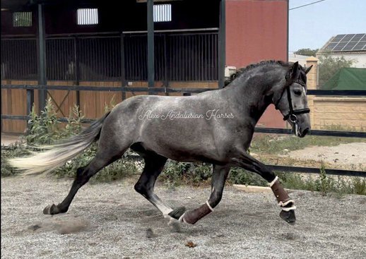 Spezial- und Barockhengst, PRE mit Vollpapieren (PRE), Hengst mit guter Laune, sehr schönes fiskales und ausdrucksstarkes Gesicht. Gute Gangarten, er beginnt mit dem Training auf der Liege.