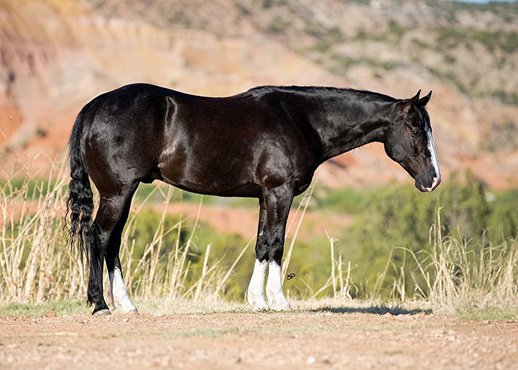 Ruhiger und sanfter schwarzer Quarter Horse Wallach.
