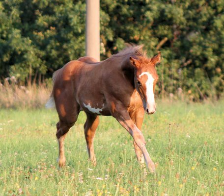 Zum Verkauf in fördernde Hände steht dieses bildhübsche, ausdrucksstarke Paint Horse Stutfohlen. Ebby ist das Herz auf der Ranch. Sie verzaubert jeden mit ihrem wundervollen, liebenswerten Charakter. Die kleine Dame ist nicht nur korrekt gebaut, sie bringt auch noch eine top Abstammung mit. Ihr Vater ist Black Starbuck (sired by NRHA European Derby Res Champion L4- NRHA European Derby Champion L3- Equita Lyon Open Res Champion- AQHA European Futurity Open Class Champion Hollywood Gun Dunnit (by Hall of Famer- and NRHA’S first $13 Million Dollar Sire Colonels Smoking Gun). Die Mutter von Ebby ist eine Enkelin von Mr Jet Max und Hesa Fancy Toy. Das Fohlen ist 5.23 geboren und wird ein geschätztes Endmaß von 150 cm bekommen. 5-Panel und Imm n/n. Ebby wächst artgerecht mit Gleichaltrigen im Herdenverband auf und kann im November umziehen. Sie beherrscht bereits jetzt das Fohlen ABC. Ist super brav im Umgang, läuft am Strick wie eine ganz Große. Natürlich wird sie regelmäßig dem Hufschmied vorgestellt und ist bei Abgabe mehrfach entwurmt und geimpft. Erhält selbstverständlich APHA Papiere und einen E-Pass inkl. Zuchtbescheinigung. Gerne kann dieses Träumchen auf 4 Beinen angeschaut werden.