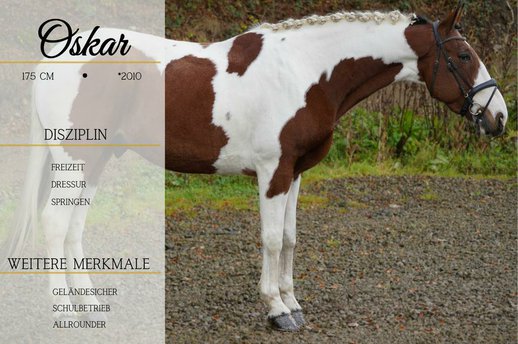 Oskar ist ein 13 Jähriger Scheckwallach ca. 175 cm