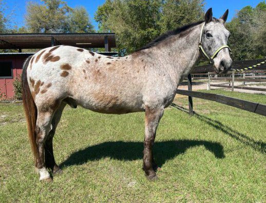 Die süßeste, sicherste Appy, die ich je gesehen habe! Dippin Dots ist ein 10-jähriger Appaloosa-Kreuzungswallach. Er misst 14,2 Stunden und ist... Wie mein Tierarzt sagt... etwa einen Fuß breiter als jeder Appaloosa, den er je gesehen hat. Dots hat die perfekte Größe für Kinder und Erwachsene. Er ist ruhig und sanft mit einem süßen, liebevollen Gemüt. Dots fährt sowohl Englisch als auch Western. Er ist geschmeidig zu reiten und weich im Zaumzeug. Mehr Whoa als Go. Er wird einen langsamen, leicht zu sitzenden Westernlauf machen oder Sie können ihn in einen vorwärts gerichteten Jäger-/Dressurtrab bringen. So vielseitig! Dippin Dots ist erstaunlich auf Trails und wurde von Kindern und Anfängern gefahren. Er reitet durch den Verkehr, landwirtschaftliche Geräte, Esel, Kühe, Hunde usw. und zuckt nie mit der Wimper. Er reitet allein oder in einer Gruppe auf den Trails und geht überall hin, wo man ihn hinweist. Er überquert Wasser, Schlamm, Brücken und andere Hindernisse. Als ich zum ersten Mal Dippin Dots fuhr, lud ich ihn auf einen neuen Anhänger ohne Trennwände und Pferde, die er nicht kannte, stieg am Straßenrand auf, während ich telefonierte, und fuhr 2+ Stunden lang an einem neuen Ort. Er war perfekt. Dots ist eine gute Wahl für Kinder oder Erwachsene, die in der Arena herumspielen und Selbstvertrauen auf den Trails aufbauen möchten. Er ist ein barfüßiger, einfacher Halter und ist auf dem neuesten Stand in Bezug auf Schüsse, Coggins, Floating, Entwurmung und Hufpflege. Keine Laster oder Wartung. Gut erzogen und einfach für alle Basics – Fangen, Führen, Laden, Binden, Wenden, Baden usw. Dots macht sich gut alleine oder in der Gruppe.