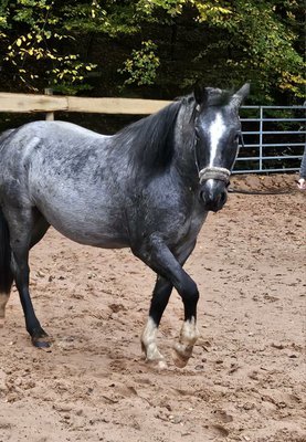 Zum Verkauf steht ein echter Eyecatcher. Sita de Troja ist eine Criollo Cruzado Stute in der tollen Farbe, blue roan (im Sommer Rappschimmel, im Winter fast schwarz). Sie ist 2019 geboren und hat ein aktuelles Stockmaß von ca. 145 cm. Die Stute ist ausgestattet mit einem sehr kräftigen Körperbau und wird auch Erwachsene gut abdecken. Durfte in Ruhe groß werden. Kennt Offenstall aber auch Boxenhaltung und ist bei beiden unproblematisch. Sie ist sehr robust. Troja besitzt einen ganz tollen Charakter, sehr menschenbezogen und absolut klar im Kopf. Es wurde viel Bodenarbeit mit ihr gemacht. Wurde an den Sattel und Trense gewöhnt, das macht sie perfekt und ohne irgendwelche Probleme. Wurde aber noch nicht geritten. Troja müsste jetzt weiter gefördert werden. Die Stute wird sicherlich später vielseitig unterm Sattel einsetzbar sein. Troja verspricht ein richtig toller Begleiter für die Freizeit und mehr zu werden. Wird von privat verkauft.