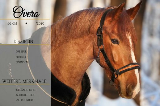 *Overo* ist ein wunderschöner und super cooler Wallach, der eine abnormale Rittigkeit hat. Zudem brav mit Kindern und verlässlich im Gelände. Wir können uns ihn auch für Therapie vorstellen. Im Umgang brav wie auch beim Gelassenheitstraining. Traumpferd !!!