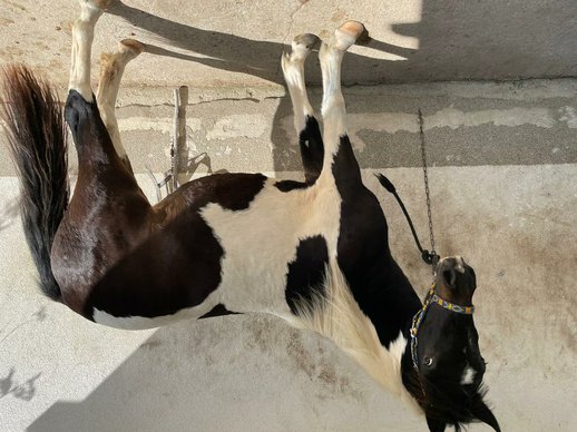 Wir müssen uns leider aus Zeitgründen von unserer 2,5 jährigen Mix Schecke Stute trennen. Sie ist eine verschmuste Maus und sehr menschenbezogen und kinderlieb. Sie kam als 15 Monate rohes Jungpferd zu uns und geht mittlerweile an der Longe und auch draußen unterwegs. Aktuell laufen die Vorbereitungsübungen für das Anreiten. Sie ist lückenlos entwurmt, gegen Tetanus und Grippe geimpft. Hat natürlich regelmäßig vom Hufschmid ihre Hufpflege bekommen. Sie hat einen Pferdepass und ist gechipt. Vater ist ein Pinto. Mutter ein Noriker/Friesenmix. Sie kennt Boxenhaltung sowie Offenstall. Geschätztes Endmaß ca. 140-145 cm. Sie kann gerne jederzeit nach Vereinbarung besichtigt werden. Keine Händler. Platz vor Preis. Lebensplatz bevorzugt. Kein Notverkauf.