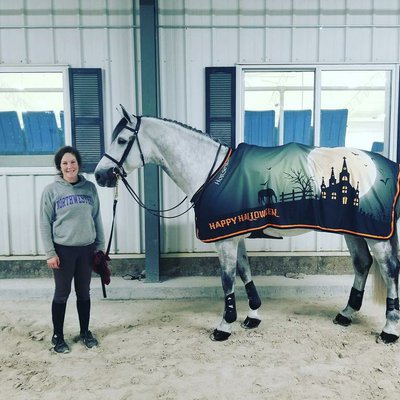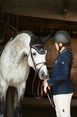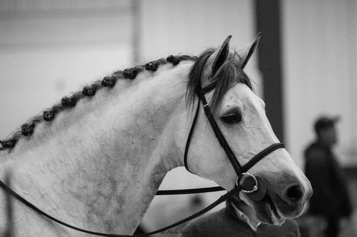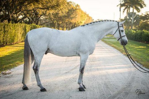 Er ist ein wunderschöner grauer Holsteiner Wallach. Derzeit springt er um die 1,30 m und hat die Fähigkeit, mehr zu tun. Er hat drei tolle Gangarten, ein Trensenmaul und ist in der Ebene wunderschön.