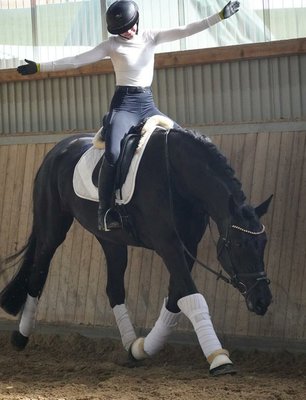 *Black Magic* Schöner kann man ein Pferd nicht malen, dazu mit Rittigkeit, Qualität und super Nerven ausgestattet. Sie bringt 3 sehr gute und bequeme GGA mit sich, bietet sich leicht im Genick an und macht nur Freude. Sie ist so unerschrocken, auf ihr rumturnen, Planen, Lärm usw. lassen sie unbeeindruckt. !!!SCHAUEN SIE SICH UNBEDINGT IHR VIDEO AN!!! Sie bringt vielseitiges Blut mit sich und bietet sich somit auch als Allrounderin gut an. Sie eignet sich für Jugendliche und auch ängstliche Reiter mit Begleitung, trotz ihres alters. Auf ihr fühlt man sich so sicher. Man kann sich nur in dieses bezaubernde Pferd, wo einfach alles stimmt, verlieben. Sie wird jeden so schnell begeistern wie auch uns.