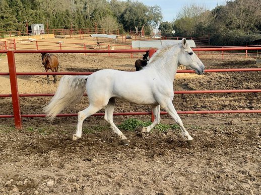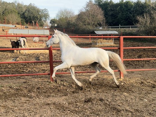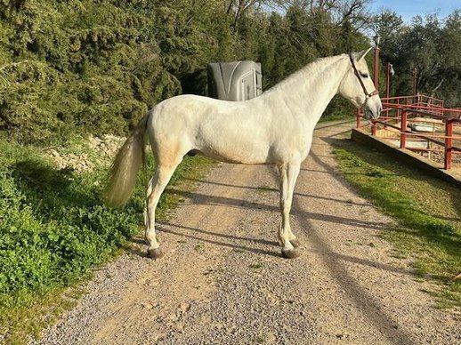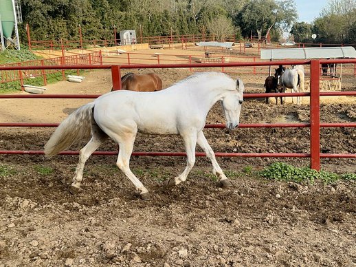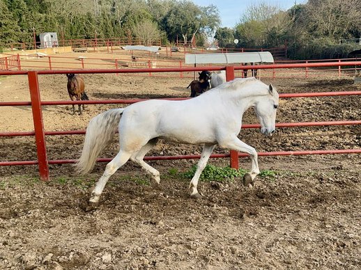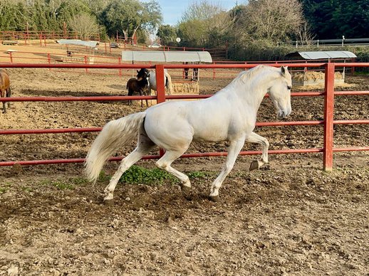 Er wird 8 Jahre alt. Er bewahrt die wahre Essenz der alten andalusischen Pferde. Perfektes Körperexterieur und hohe Bewegungen.