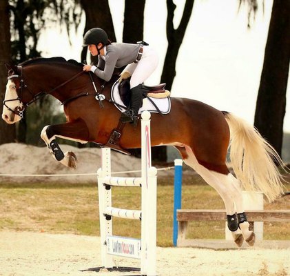 Saltando 1,20-1,30. Con 9 años y 1,70 a la cruz. Caballo atento, correcto que se motiva con el salto.