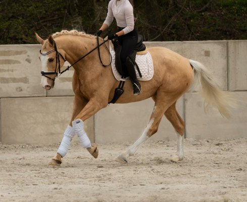 *Golden* ist ein traumhaft schöner und dabei cooler Wallach, der genügend Qualität in sich hat. Total liebe und entspannt, schön in der Bahn zu reiten ist. Er bringt 3 gute sowie bequeme GGA mit sich und bietet sich immer willig an. Er zeigt schöne Sprünge und ist damit der perfekte Allrounder. Ist hier zudem schon ins fremde Gelände ausgeritten worden. In fremder Umgebung zeigt er sich auch brav, Lärm, Baustellenfahrzeuge usw. machen ihm nichts aus. Ein Pferd das mit seiner tollen Farbe und Ausstrahlung alle Blicke auf sich zieht. !!!SCHAUEN SIE SICH UNBEDINGT SEIN VIDEO AN!!! Er eignet sich auch für Jugendliche. Nicht empfindlich an den Hilfen. Im Umgang gut erzogen sowie sehr verschmust und Menschenbezogen. Bei allem sehr unkompliziert und für sein Alter schon sehr abgeklärt. In Golden kann man sich nur verlieben.