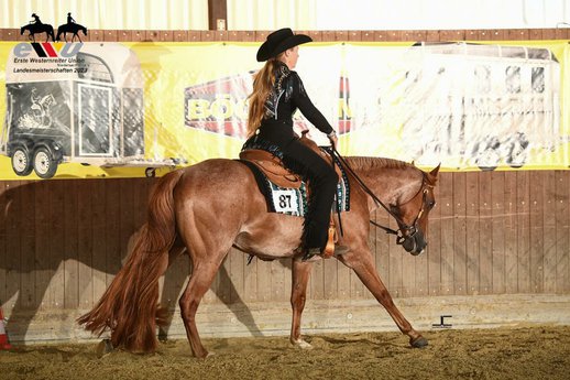 Chaising High ist ein top gezogener Quarter Horse Wallach für den Pleasure / Allroundbereich. Aufgrund persönlicher Umstände sucht dieser Eyecatcher ein neues, förderndes Zuhause. Er ist 2019 geboren mit einem Stockmaß von ca. 155 cm. Henry ist gut gebaut, ausgewogen bemuskelt und kann sich gut bewegen. Vom Charakter her ist er lieb, verschmust, umgänglich aber auch manchmal ein Schelm. Der Wallach kennt Boxenhaltung sowie Herdenhaltung. Ist schmiede- und verladefromm. Gesund (große AKU ohne Befund von 2023 liegt vor). Henry besitzt eine gute Westernausbildung und wurde im letzten Jahr in den Jungpferdeprüfungen Basis und Trail der EWU vorgestellt. In der Basis gewann er z.b. die Bronzemedaille des Landesverbandes Niedersachsen. Sein Pedigree lässt keine Wünsche offen. Henrys Vater ist der erfolgreich geshowte Certain Potential, ein Potential Investment Sohn. Seine Mutter, Girlie Girl, ist eine Openrange (Zippos Mr Good Bar) Tochter. DQHA Maturity Champion Western Pleasure, NSBA Futurity Champion Non Pro Western Pleasure sowie multiple Champion Western Pleasure. Top Pferd für den Sport aber auch als Freizeitbegleiter ideal.
