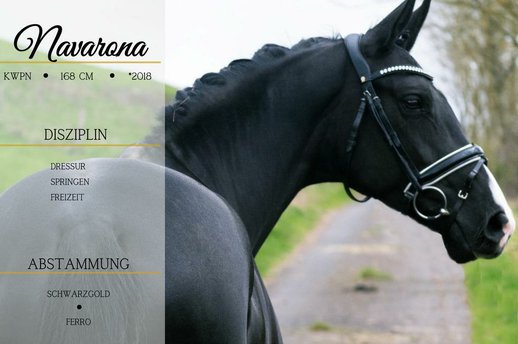 Novarona ist eine 2018 geborene KWPN Stute ca. 1,68 cm v. Schwarzgold, Consul x Ferro, Heidelberg