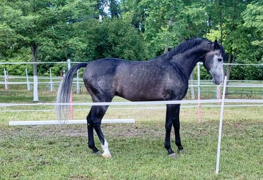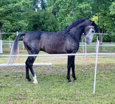 Geboren : 2020 - 168-9 cm mit Stock . Wenn Sie ein wirklich besonderes Pferd wollen, ist es ein Hengst mit einem seltenen Stil, außergewöhnlicher Genetik, sehr lockerer Bewegung und gutem Charakter.
