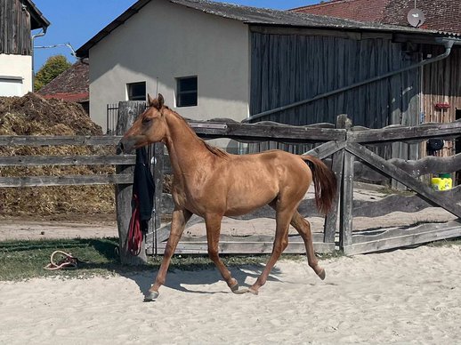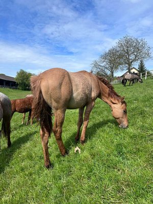 Smart Scottish Boon ist ein 5.2023 geborener Quarter Horse Hengst in der tollen Farbe red dun. Er ist ein korrekt gebauter, neugieriger und sehr menschenbezogener Junghengst. Wächst artgerecht mit Gleichaltrigen im Herdenverband auf, kennt das Fohlen ABC und lernt alles, was man in dem Alter lernen sollte. Scotty zeigt sehr athletische Bewegungen. Zusammen mit seiner vielversprechenden Abstammung, verspricht er ein tolles Prospekt für den Reiningsport und die Cowhorseklassen zu werden. Scotty ist ein Enkel von dem im Superior Hengstbuch eingetragenen Quarter Horse Hengst Rainboon Man. Mütterlicherseits stammt der Jährlingshengst von Hollywood Dun It und Peppy Badger Chex ab. Er wird vom Züchter verkauft.