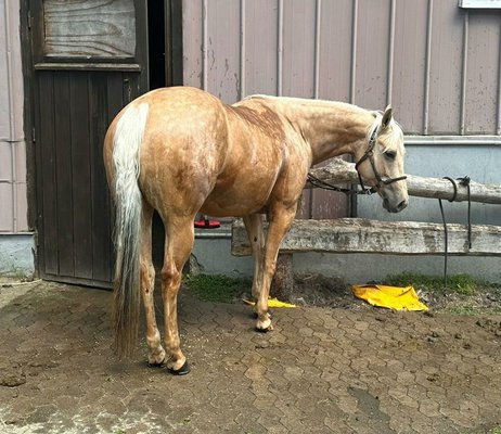 Leider muss manchmal die Vernunft siegen und deshalb sucht diese Traumstute ein neues, sehr gutes Zuhause. Goldie ist nicht nur bildhübsch, sondern auch kräftig mit gutem Fundament und sehr lieb und zuverlässig. Sie ist eine 2017 geborene, 150 cm große Quarter Horse Stute. Sie ist gut zu händeln, sehr auf ihren Menschen bezogen und unproblematisch. Goldie ist robust und steht aktuell im Offenstall. 5-Panel n/n. Die Stute besitzt eine sehr gute Ausbildung, kennt alle Reiningmannöver. Diese müssen aber erst wieder aufgefrischt werden, weil mehr an der Basis und Tragkraft gearbeitet wurde. Geht super ins Gelände, dort sicher unterwegs. Gerne flott aber immer kontrolliert. In der Bahn ist sie sehr lieb und zuverlässig aber eher ruhig. Kennt Training und Kurse außerhalb des eigenen Stalles, dabei vollkommen unproblematisch und lieb. Goldie ist sehr begabt in Richtung Trail, Ranch Riding, Ranch Rail und Horsemanship. Alles in guter Qualität zu reiten. Die Stute ist sehr weich zu sitzen und zeigt schöne Bewegungen. Sie wäre ein tolles Pferd für einen ambitionierten Jugendlichen, aber auch als verlässlichen Freizeitpartner ideal. Goldie ist eine Wimpys Little Step Enkelin. Ein passender Westernsattel kann mit erworben werden. Von privat nur in allerbeste Hände abzugeben.